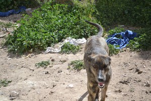 Maca apareció junto a su hermano Alvin, en una viña atados por el cuello con un alambre que les estaba ahogando. Tienen un año aproximadamente y son súper cariñosos
