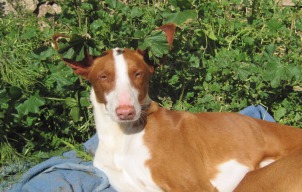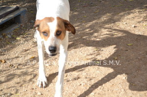 Es muy alegre y juguetón, se lleva bien con machos y hembras, pero cuando estamos los voluntarios, quiere ser el sólo el que reciba las caricias.
