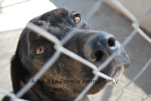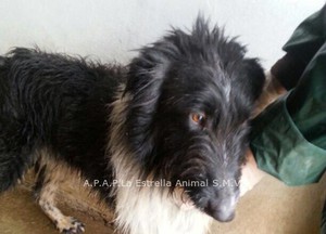 Bruno es un perrito bueno y cariñoso, aunque algo tímido, que lamentablemente ha conocido el abandono y el hambre siendo ya un perro adulto, lo que le ha provocado cierto estado de depresión